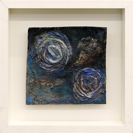 ANDREA RACCAGNI, 1996, tecnica mista su tela intavolata, cm 22x22, con cornice 37x37x6,5 cm, peso 1 kg. Al verso: firma e anno. Opera con certificato di provenienza della Daliano Ribani Arte. Opera con cornice.