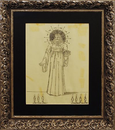 GIORGIO DE CHIRICO "L'immagine eccelsa", 1977, matita su cartoncino, cm 44x32,5, con cornice 71x59x5,5 cm, kg 5,70. Opera archiviata dalla Fondazione Giorgio e Isa De Chirico a cura del Prof. Paolo Picozza in data 20/03/2023 Roma al n°095/03/23 OT. Opera con certificato di provenienza della Daliano Ribani Arte. Opera con cornice.