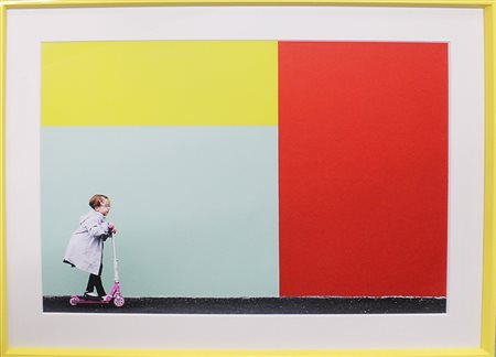 ERIC DUFOUR, "Miss Trottinette", anni 2000, fotografia su dbond, dim 60x90. Al verso: nome autore, titolo, dimensioni.