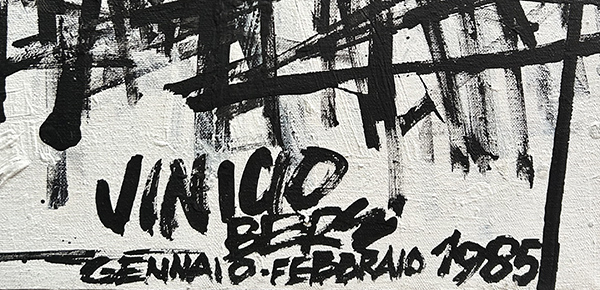 VINICIO BERTI, "Visione verso l'alto (Solitariamente)", 1985, olio su tela, cm 100x100. Al fronte: firma, anno, titolo. Al verso: firma, titolo, anno e etichetta con informazioni. Opera senza cornice. Opera in attesa di archiviazione