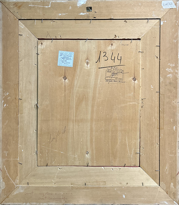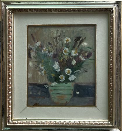 MARIO MARCUCCI, "Fiori", anni '70, olio su tavola, cm 50x40. Al verso: timbro Galleria d'arte Cavour Firenze, etichetta con informazioni e provenienza. Opera con cornice.