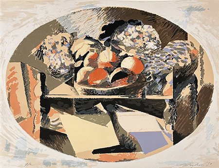 PAOLO MENEGHESSO, 1990, litografia su cartoncino, cm 48,5x60x0,5, kg 0,5. Al fronte: tiratura P/A in basso a sinistra, firma e anno in basso a destra. Al verso: firma. Opera senza cornice