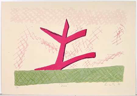LICATA RICCARDO,"Icaro" litografia a colori, cm 34x49, Firma e anno in basso a destra, Titolo in basso in centro, Numerazione in basso a sinistra