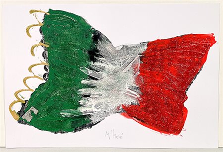 M'HORO', Opera realizzata ad acrilico, tecnica mista e collage con frammenti di radiatori e rame su cartoncino in edizione limitata con numerazione alfanumerica progressiva a 50. Opera considerata un unicum. Autentica dell'artista su fotografia cm 48,8x33 cm