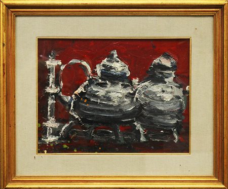 LUIGI CARNEVALI, "Natura Morta", anni '70 circa, olio su tavola, dim 24,5x33. Al verso: inserto di giornale "50 anni di pittura di L.Carnevali", testo di Aurelio T. Prete. Opera con cornice.