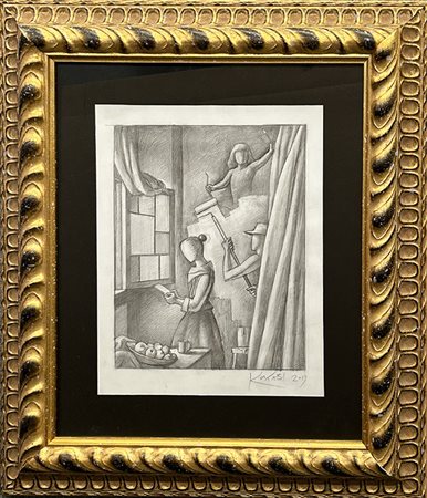 MARK KOSTABY "Shaping history" , matita su cartoncino, anno 2019, cm 33x27 con cornice 58x50x5 kg 2. Al verso firma e anno in basso a destra, al verso firma titolo anno. Opera con autentica su foto dell'artista