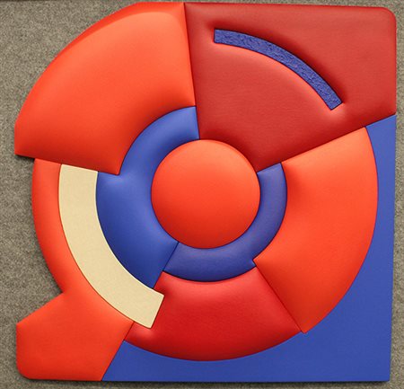 SAMUELE VENTANNI, "Introiezione: due rossi, due blu circle", anni 2000, tecnica mista su tela estroflessa, 80x80x4 cm, 3,50 kg. Al verso: firma, timbro al centro, titolo in alto a sinistra e misura in basso a destra. Certificato di provenienza della Daliano Ribani Arte. Opera senza cornice.