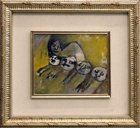 MINO MACCARI, anni '80, olio su cartone telato, cm 25x30, con cornice 51x56x5 cm, 0,90 kg. Opera archiviata dall'Archivio Generale del Maestro Mino Maccari al n°2239 in data 1/06/1998 Cinquale e in data 16/05/2024. Al fronte: firma in basso a sinistra. Certificato di provenienza della Daliano Ribani Arte. Opera con cornice in omaggio.