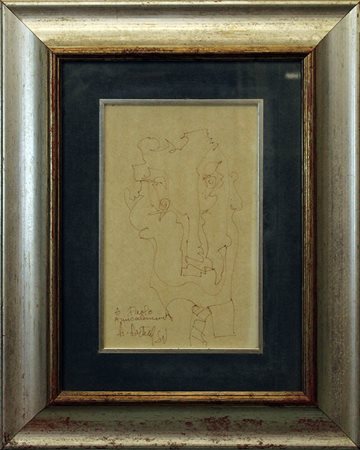 ANONIMO ,penna su cartoncino, cm 33x21 con cornice 60x49x3 kg 3 Al fronte:dedica con firma in basso a sinistra. Certificato di provenienza della Daliano Ribani Arte. Opera con cornice in omaggio.