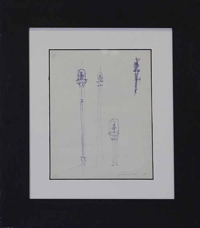 EMILIO SCANAVINO, Senza titolo, 1958, Biro su carta, Dim. 27x21, Al fronte: firma e data in basso a destra, Opera accompagnata da certificato di autenticità su foto di Giorgina Scanavino, Opera con cornice