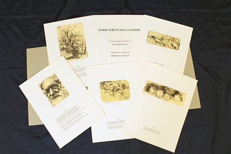 WALTER PIACESI, LEONARDO BORGHESE, "Altre Poesie per i Bambini", 1977, 13 poesie di Leonardo Borgese e 4 acqueforti originali di Walter Piacesi compongono questo Volume di cui sono state tirate 75 copie stampate a cura di Alberto Bernini dalle Arti Grafiche Editoriali per le edizioni di Cà Spinello in Urbino, nel mese di marzo 1977. Esemplare n°56/75. Dimensione 18,5x13x2 cm, il libro si presenta in un cofanetto verde.