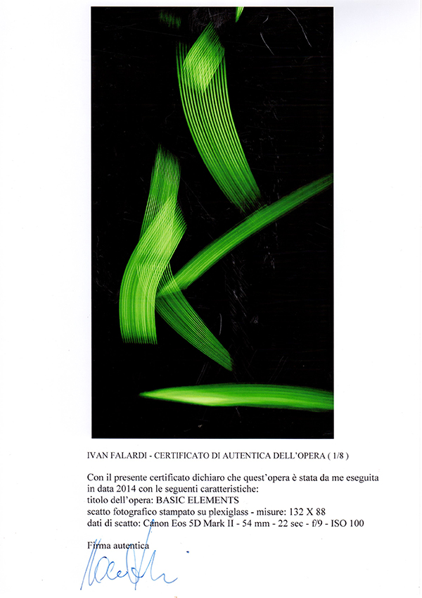 IVAN FALARDI "basic elements" ,2014, scatto fotografico stampato su plexiglass cm 132x88. Opera con autentica