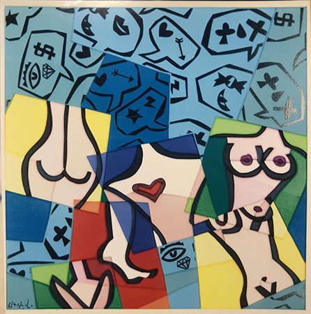 UGO NESPOLO "Human body" anni 2000 Acrilici e intarsio su legno, cm 40x40, Opera con autentica