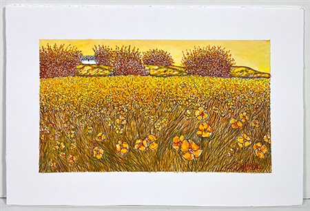 DAUREA GIOVANNI, "Autunno" china e acrilico su poliplat. Firma, tecnica dimensioni timbro e numero di archiviazione presso l'archivio Giovanni Daurea a retro, cm 30x45
