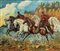 GIOVAN FRANCESCO GONZAGA "Butteri e mandria di cavalli in spiaggia", serigrafia su tela, cm 50x70. Al fronte: firma in basso a destra, tiratura in basso a sinistra. Esemplare: 231/250. Al verso: Timbro. Opera con cerificato di provenienza della galleria Daliano Ribani Arte. Opera senza cornice