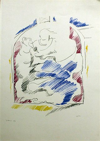 S. RIZZO anno 1983, litografia su cartoncino, cm 70x50. Esemplare 75/100. Firma in basso a destra tirtaura in basso a sinistra. Leggera fioritura