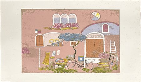 LUCIO TRABUCCO, litografia su cartoncino, cm 70x90x0,5, kg 0,5. Al fronte: tiratura P.D.A in basso a sinistra, firma in basso a destra. Al verso: firma. Opera senza cornice