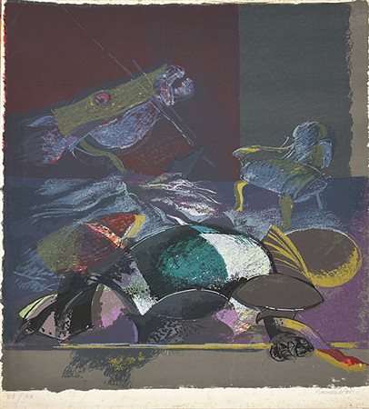 BOSCOLO NATTA, litografia su cartoncino, cm 70x50x0,5, kg 0,5. Al fronte: tiratura 131/200 in basso a sinistra, firma in basso a destra. Al verso: firma. Opera senza cornice