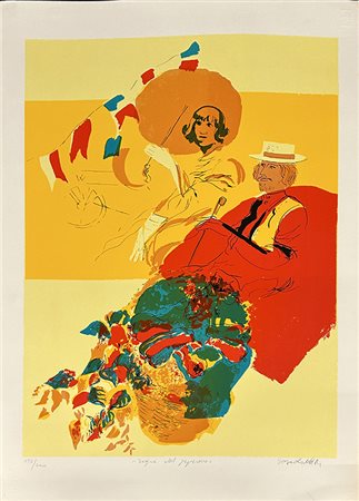BOSCOLO NATTA, litografia su cartoncino, cm 70x50x0,5, kg 0,5. Al fronte: tiratura 147/200 in basso a sinistra, firma in basso a destra. Al verso: firma. Opera senza cornice
