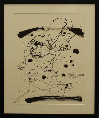 MIMMO PALADINO anni 90',circa "Da Pinocchio" china, matita e acquerello su cartoncino, cm 50x40 con cornice 61x51x2 kg 1
