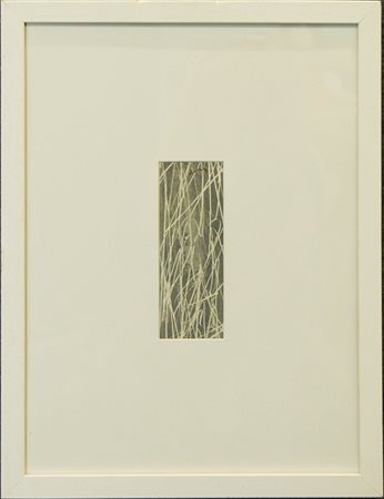 MARIO DELUIGI, anni '70, tecnica mista su cartoncino, cm 16x6, con cornice 43x33x2, peso 1 kg. Al fronte: firma in alto. Al verso: etichetta Galleria D'Arte del Cavallino Venezia con nome artista e dimensioni. Opera con cornice.