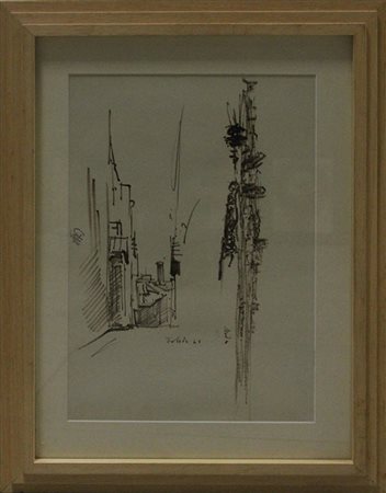 PIETRO ANNIGONI, Disegno su cartoncino, Dim 23X31, firmata in basso al centro, autentica su foto artista