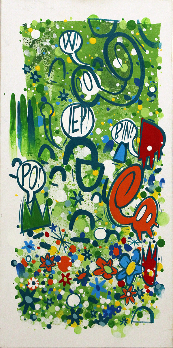 WILLOW, "Bin", 2024, smalto su tela, 60x30 cm, opera con autentica su foto dell'artista. Al verso: firma, anno, titolo, etichetta con informazioni. Certificato di provenienza della Daliano Ribani Arte. Opera senza cornice.