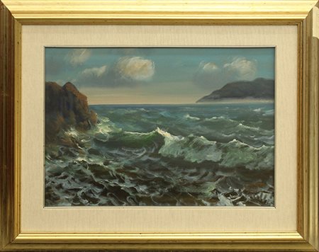 CARLO CASELLI J., Senza titolo, Anni '80 circa, olio su cartone, cm 21,5x16,5, con cornice cm 53x68x4 kg 2,60. Al fronte: firma in basso a destra. Opera con certificato di provenierza della Daliano Ribani Arte