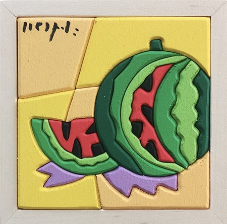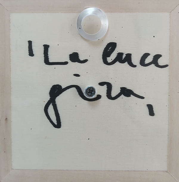 NESPOLO UGO, "La luce gira", acrilici su legno, cm 10x10. Opera accompagnata da autentica su foto dell'artista