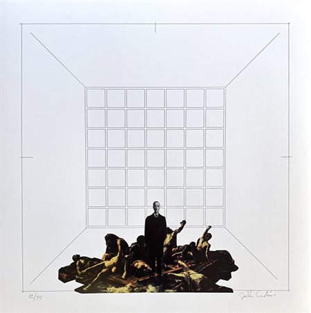 PAOLINI GIULIO, "Teorema (realizzato in occasione della messinscena del balletto teorema con scene e costumi di Giulio Paolini)", 1999, serigrafia e collage su carta, cm 69x69, tiratura 99 esemplari + 30 numeri romani