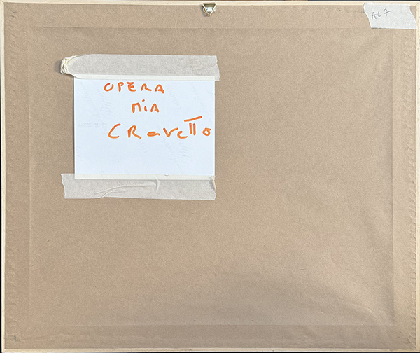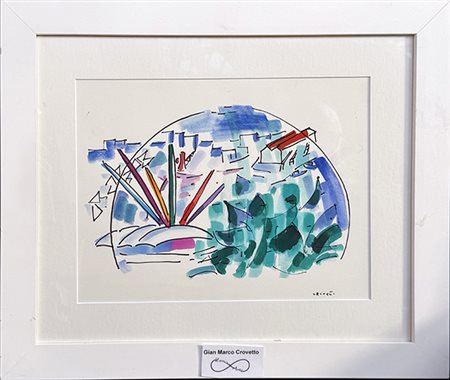 GIANMARCO CROVETTO, tecnica mista su cartoncino, cm 25x32. Al fronte: firma in basso a sinistra. Opera accompagnata da autentica su foto dell'artista. Opera accompagnata da certificato di provenienza. Opera con cornice in omaggio