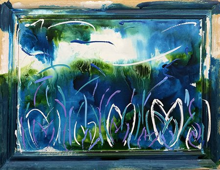 MARIO SCHIFANO, 1988/90, smalto e acrilico su tela con cornice dipinta, cm 87x117. Opera archiviata al N°88-90/211 in data 5 Marzo 2015 dalla Fondazione Multistudio. Opera accompagnata da autentica su foto dell'artista. Opera con cornice
