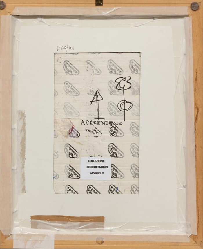 CLAUDIO OLIVIERI, 1991, tecnica mista su carta, cm 28,5x22. Al fronte: firma e data in basso a destra. Opera accompagnata da autentica su foto dell'artista. Opera con cornice