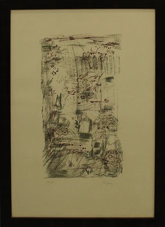 BRYEN, anni '80, litografia su cartoncino, cm 67x45, con cornice 73x51x2 cm, 3 kg. Al fronte: esemplare 30/60 in basso a sinistra e firma in basso a destra. Opera con certificato di provenienza della Daliano Ribani Arte. Opera con cornice.