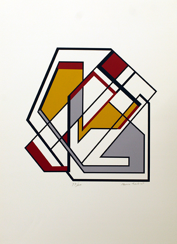 MARIO RADICE, "Strutture", 1978, cofanetto contenente 6 litografie di Mario Radice su cartoncino e foto dellì'artista con frase celebre, le misure sono per tutte cm 76x56. Al fronte: tirature in basso a sinistra, esemplari per tutte 97/100 e firma in basso a destra. Opera con cofanetto apposito.