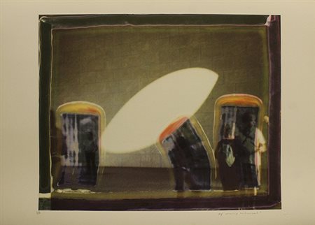 MAURIZIO GALIMBERTI, anni 2000, litografia su cartoncino, edizione 5/5, dim 100x70, opera archiviata dall'Archivio Nordest Seregno al N°8931. Al verso: timbro dell'archivio in basso. Presenta lieve difetto