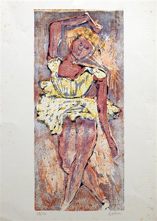 ANTONIO BARBERI, "Ballerina", anni 90' circa, litografia su cartoncino, cm 50x35. Al fronte firma in basso a destra, esemplare in basso a sinistra. Tiratura: 58/130. Opera senza cornice. Presenta fioritura