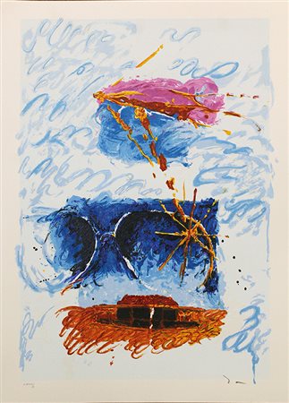 Mario Schifano, "Impressione Astratta" Serigrafia materica a smalto su carta, Dim. 70x50, Al fronte: esemplare XCII/C in basso a sinistra, timbrato a secco "Mario Schifano" e firmato in basso a destra, Senza cornice