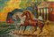 GIOVAN FRANCESCO GONZAGA, "Cavalli con Templio", serigrafia su tela, cm 50x70. Al fronte: fima in basso a destra, tiratura in basso a sinistra. Esemplare: 31/250. Al verso: Timbro. Opera con cerificato di provenienza della galleria Daliano Ribani Arte. Opera senza cornice