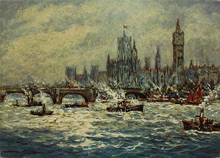 GIOVAN FRANCESCO GONZAGA, "Grigio Londinese", serigrafia su tela, cm 50x70. Al fronte: firma in basso a destra, tiratura in basso a sinistra. Esemplare: LXXXV/CL. Al verso: Timbro. Opera con cerificato di provenienza della galleria Daliano Ribani Arte. Opera senza cornice