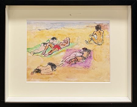WALTER PIACESI, "Le bagnanti", 1993, tecnica mista su cartoncino, cm 20,5x27,5. Al fronte: firma e anno in basso a destra. Opera con cornice in omaggio. Opera accompagnata da certificato di provenienza