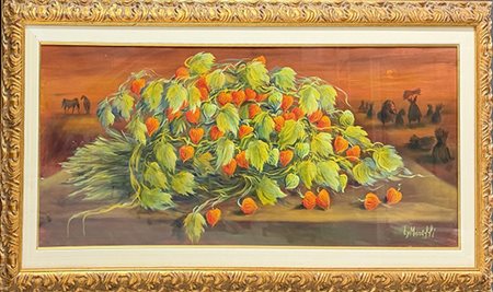 LUCIANA MANELLI, Senza titolo, olio su tela, cm 40x100. Al fronte: firma in basso a destra. Opera con cornice in omaggio. Opera accompagnata da certificato di provenienza