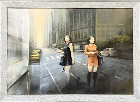 AGOSTINO CANCOGNI, "Metropoli cinese-colori d'oriente", olio su tela, cm 70x100. Al fronte: firma in basso al centro. Al verso: firma, titolo. Opera accompagnata da certificato di provenienza. Opera con cornice.
