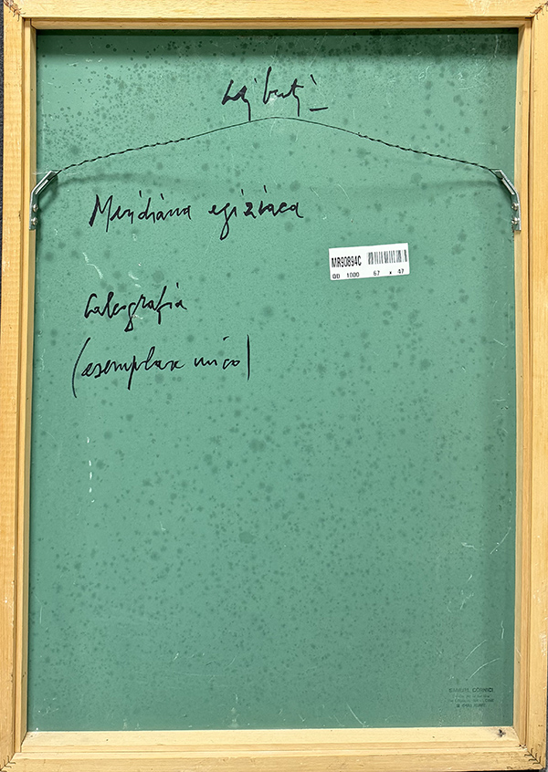 GIORGIO CELIBERTI, "Meridiana egiziana", calcografia su cartoncino, esemplare unico, cm 67x47. Al fronte: firma in basso a destra. Al verso: firma, titolo, tecnica. Opera accompagnata da certificato di provenienza. Opera con cornice.