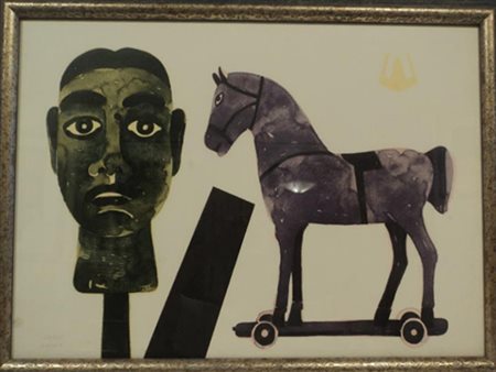 CONCETTO POZZATI ,"Gift", litografia su carta, cm 50x70. Al fronte: tiratura e firma in basso a sinistra. Esemplare: XIII/XX. Opera con cornice in omaggio, accompagnata da certificato di provenienza "Stock market srl". Opera accompagnata da certificato di provenienza della nostra galleria Daliano Ribani Arte
