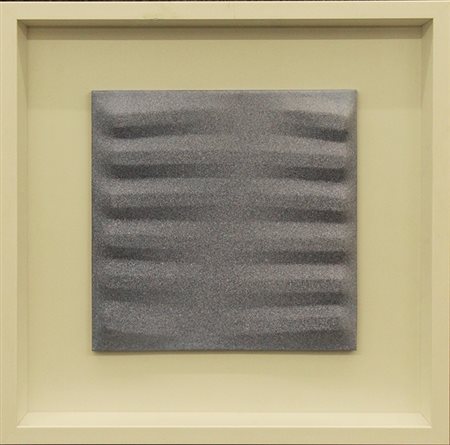 AGOSTINO BONALUMI, 1979, tela estroflessa e tempera vinilica, cm 30x30 cm, con cornice 50x50x5 cm, 3 kg, opera archiviata dall'Archivio Bonalumi a cura di Fabrizio Bonalumi al numero 79-0103. Al verso: firma e dichiarazione di autenticità da parte dell'artista. Opera con certificato di provenienza della Daliano Ribani Arte. Opera con cornice in omaggio.