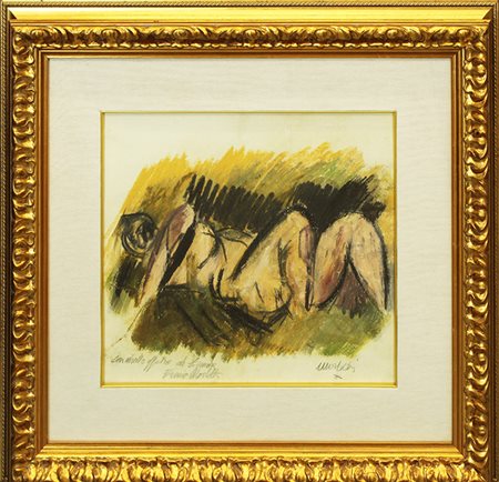 ENNIO MORLOTTI, anni '80, pastello su cartoncino, cm 38x34, con cornice 61x63x7 cm, peso 6,5 kg, opera con autentica. Al fronte: firma in basso a destra e dedica in basso a sinistra con firma. Opera con cornice.