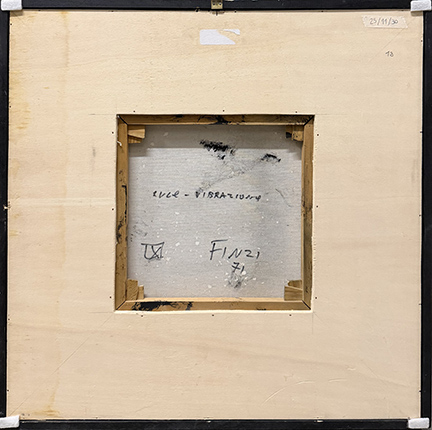 ENNIO FINZI, "Luce-vibrazione", 1971, acrilici su tela, cm 30x30. Al verso: titolo, anno, firma. Opera accompagnata da autentica su foto dell'artista e certificato di provenienza. Opera con cornice in omaggio.