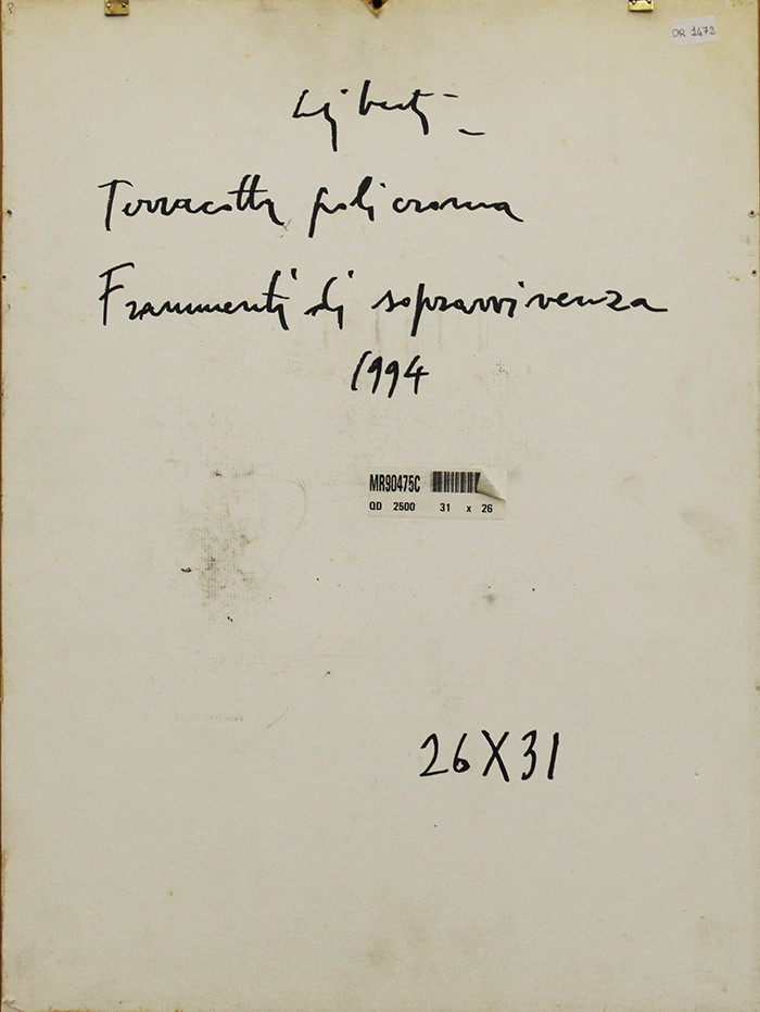 GIORGIO CELIBERTI, "Frammenti di sopravvivenza", 1994, terracotta policroma, dim 31x26. Al verso: firma, tecnica, titolo, anno, misure. Opera con cornice.