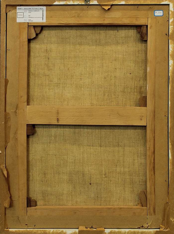 DOMENICO PURIFICATO, "Figura", 1962, tempera su carta intelata, 70x50 cm, cm con cornice 73x53x4,5, kg 4,40. Al fronte: firmato e datato in basso a sinistra. Al verso: etochetta in alto a sinistra Arte Atelier. Opera con certificato di provenienza Elite Trading Srl. Opera con cornice.